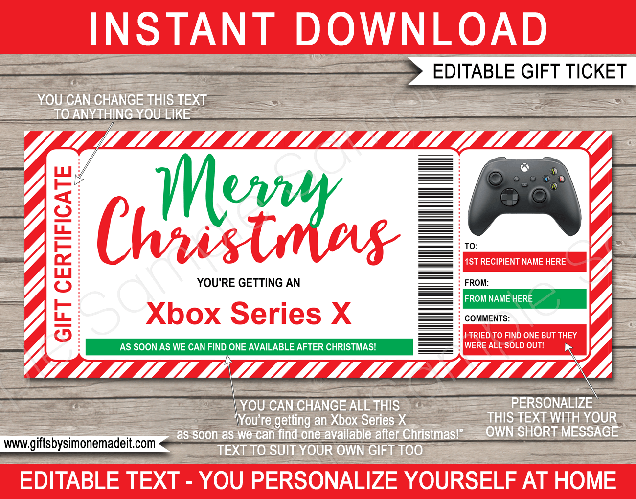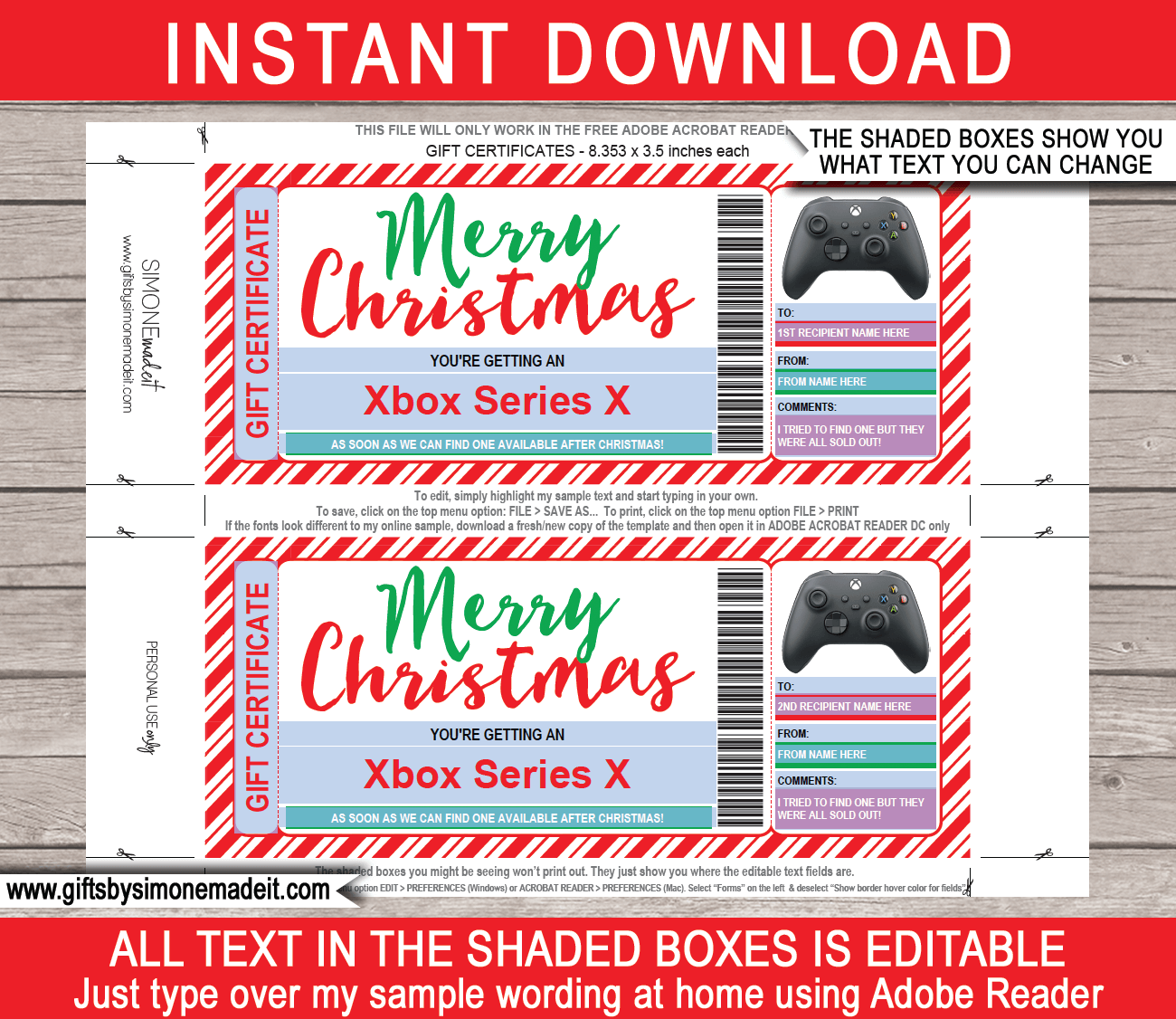 Christmas Xbox Series X Gift Certificate Template Gift Voucher Present