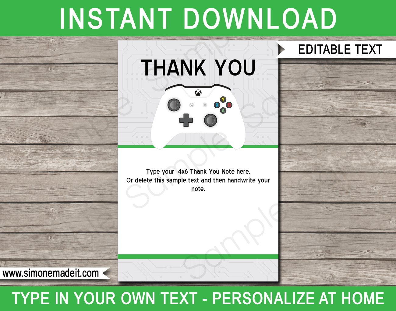 Printable Xbox Thank You Cards Template Video Game Birthday Party