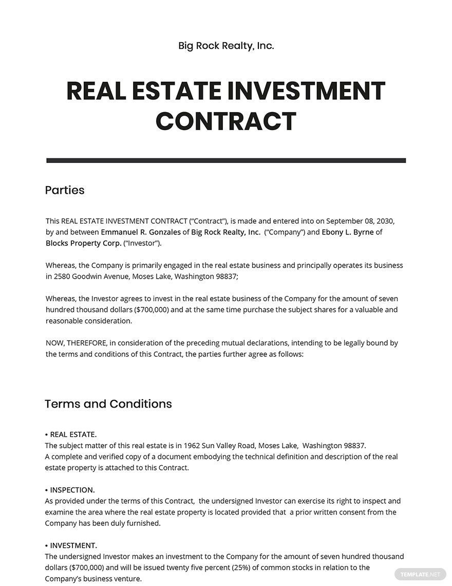 Real Estate Investment Contract Template