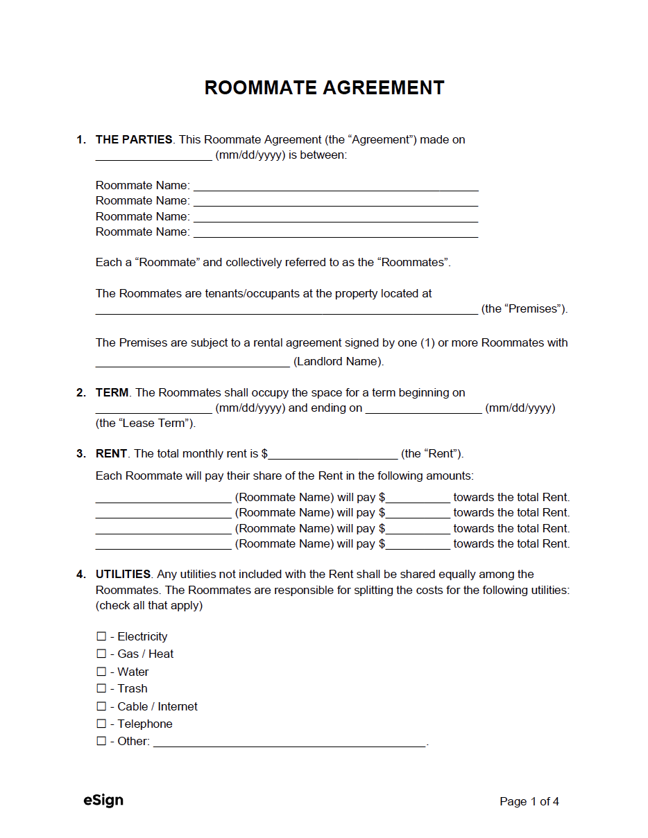 Free Roommate Agreement Template PDF Word
