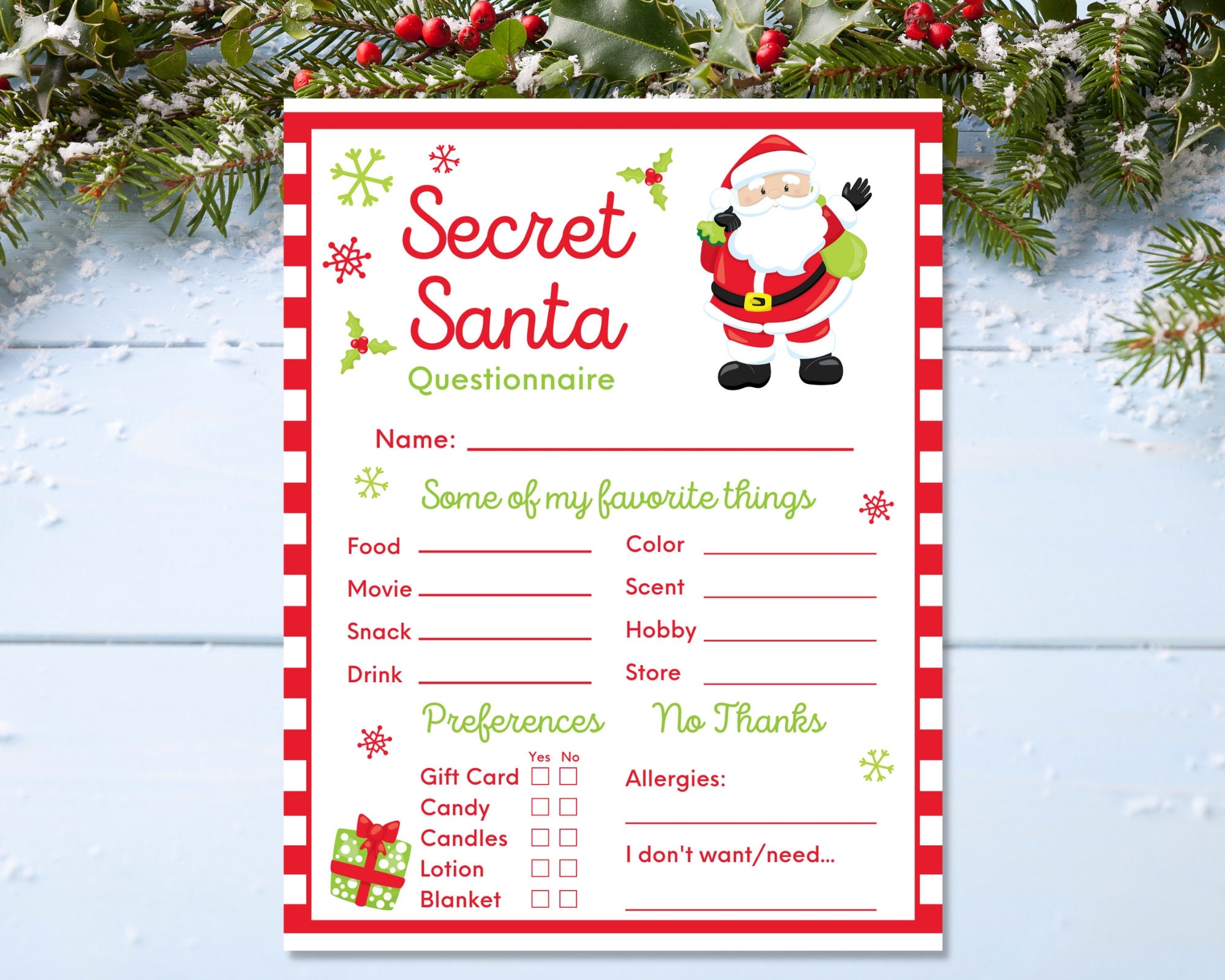 Secret Santa Questionnaire Printable Instant Download Digital Download Secret Santa Form Etsy