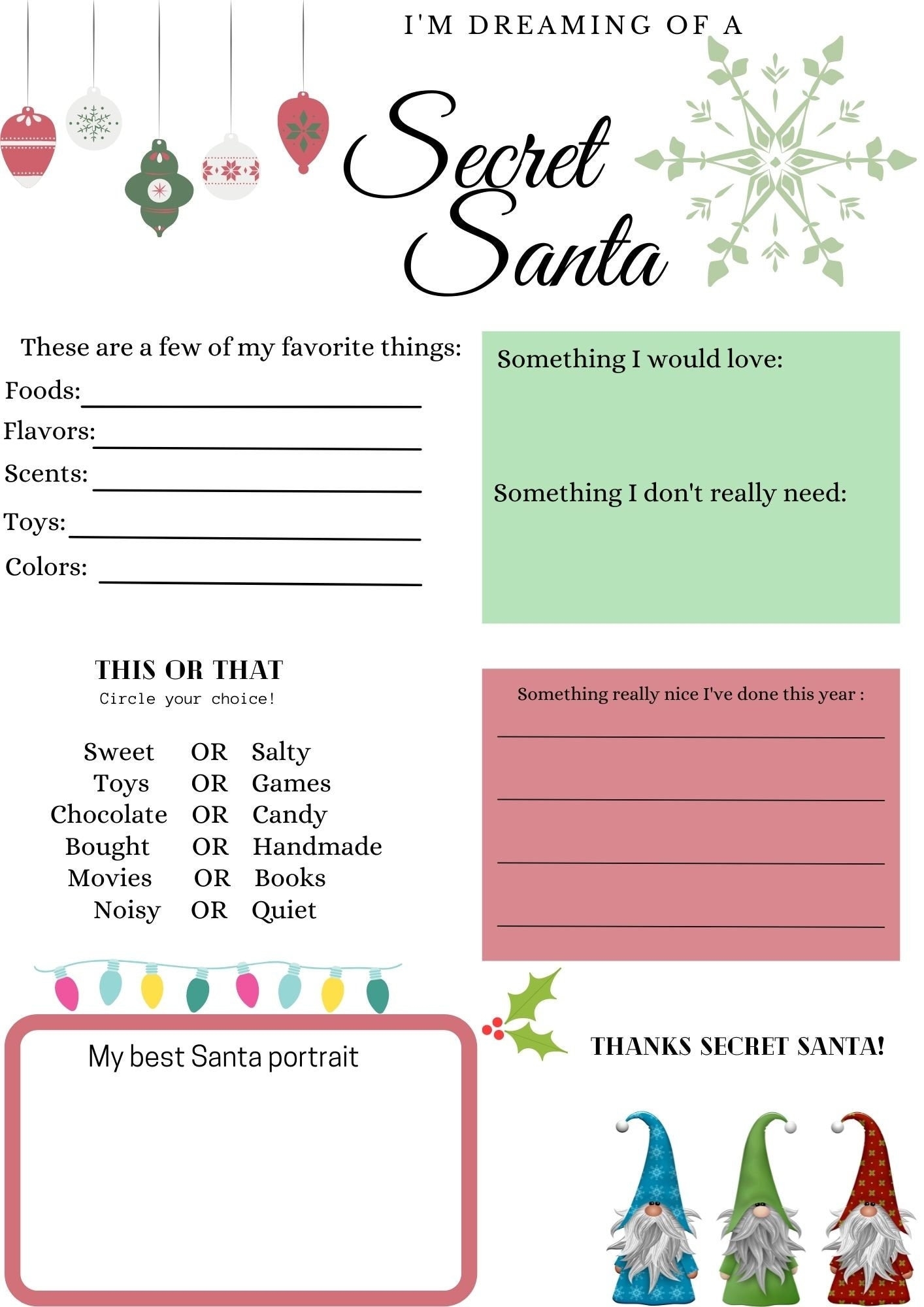 Secret Santa Questionnaire For Students – A printable template is a pre-designed file or design that you can tailor and utilize for different functions. These templates are usually readily available in digital formats and can be printed or shared online.