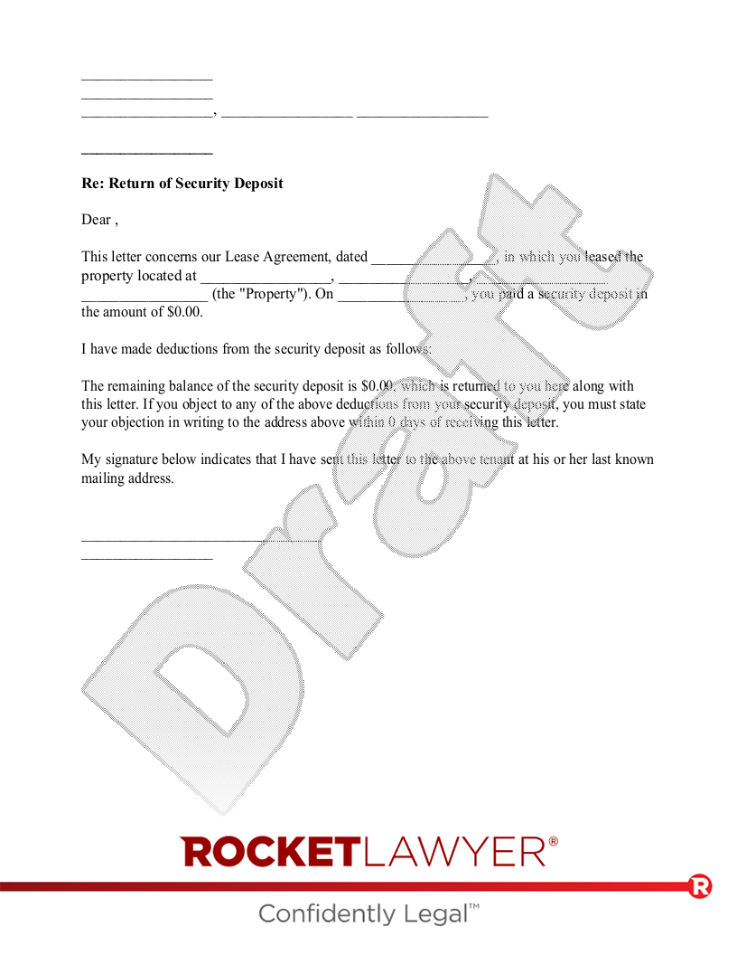 Free Security Deposit Return Letter Template Rocket Lawyer