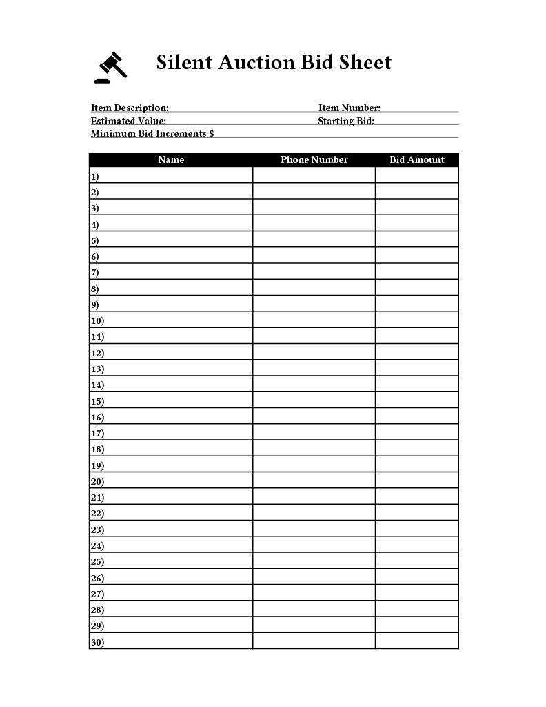 Silent Auction Bid Sheets Pdf Free – An adaptable and personalized file or layout, known as a printable template, can be utilized for a range of functions. They are typically readily available in digital formats, enabling simple printing or online sharing.
