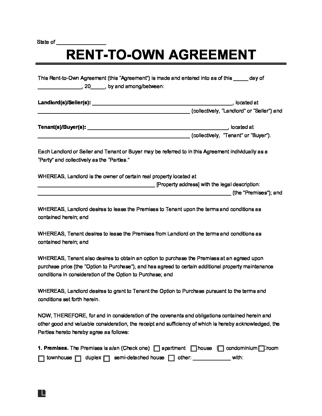 Free Rent To Own Lease Agreement Template PDF Word