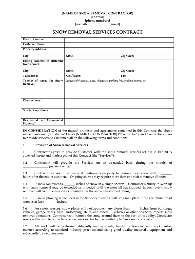 Snow Removal Contract Template Free – An adaptable and customizable file or layout, referred to as a printable template, can be used for a range of functions. They are typically available in digital formats, allowing for easy printing or online sharing.
