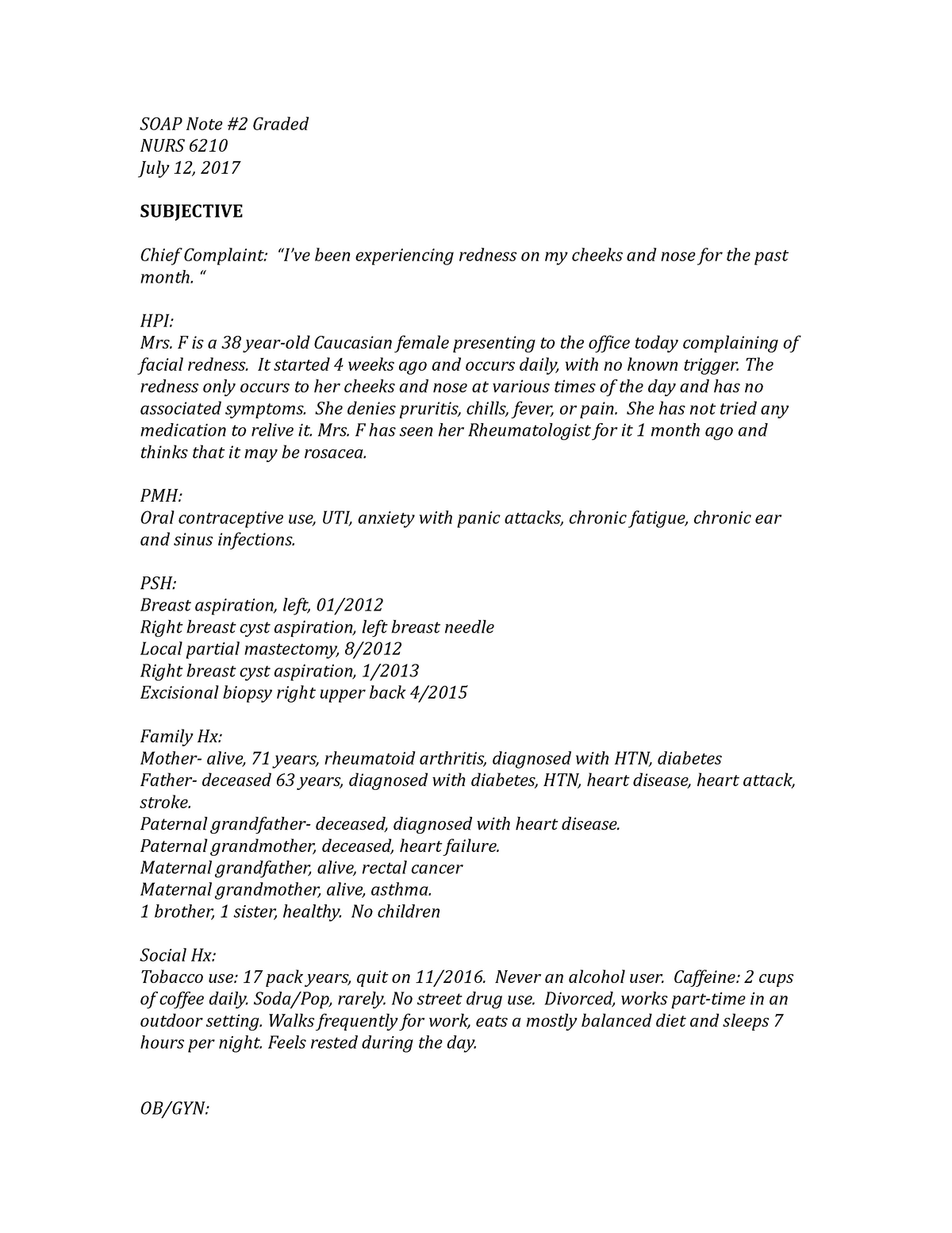 SOAP Note 2 Graded Docx Sample SOAP Note 2 Graded NURS 6210 July 12 2017 SUBJECTIVE Chief Studocu