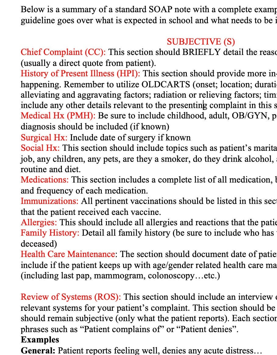 SOAP Note Guide And Real Example For Nurse Practitioners Physician Assistants Providers And Students Etsy