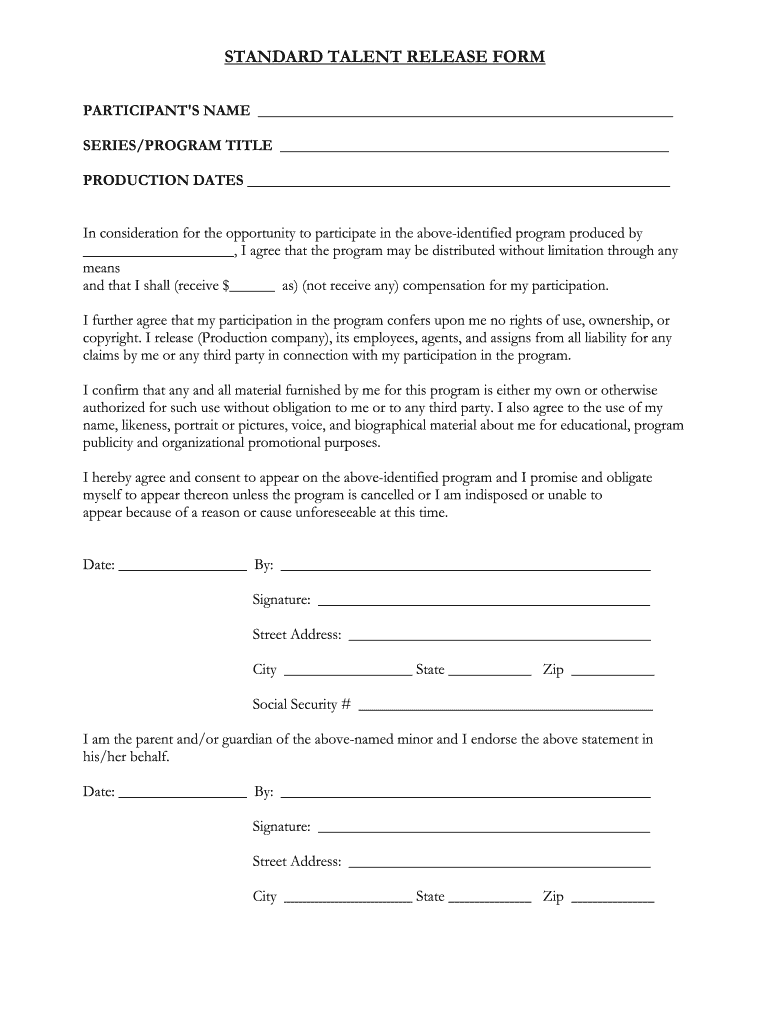Talent Release Form Template Free – An adaptable and personalized document or design, known as a printable template, can be used for a variety of functions. They are typically readily available in digital formats, allowing for simple printing or online sharing.