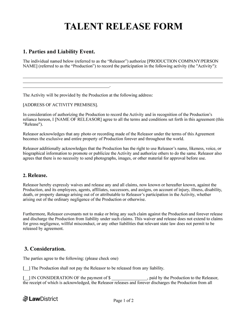 There are several advantages to utilizing Talent Release Form Template Free over starting from scratch: