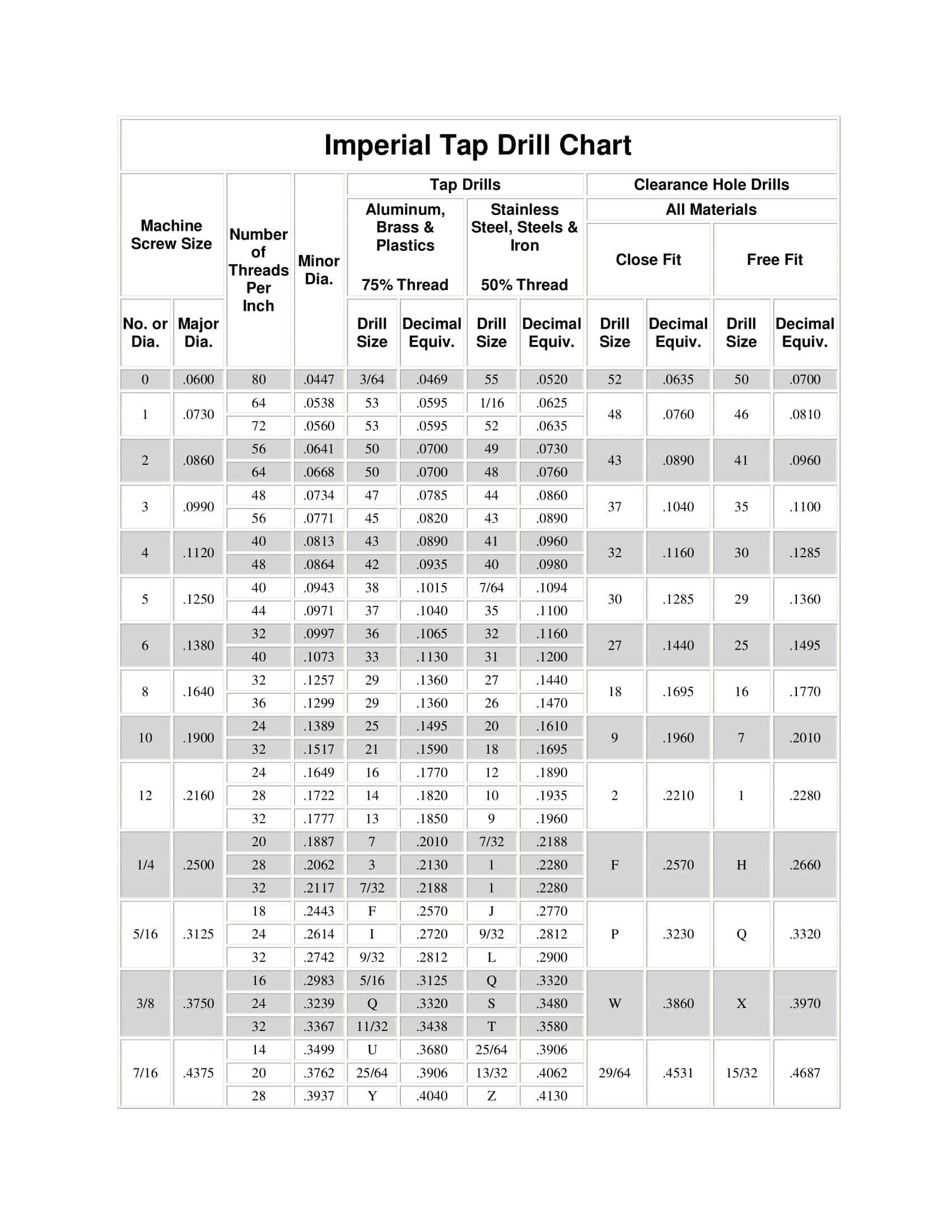 Tap Drill Size Chart Mm Pdf – A versatile and personalized document or layout, called a printable template, can be utilized for a variety of purposes. They are frequently available in digital formats, enabling easy printing or online sharing.