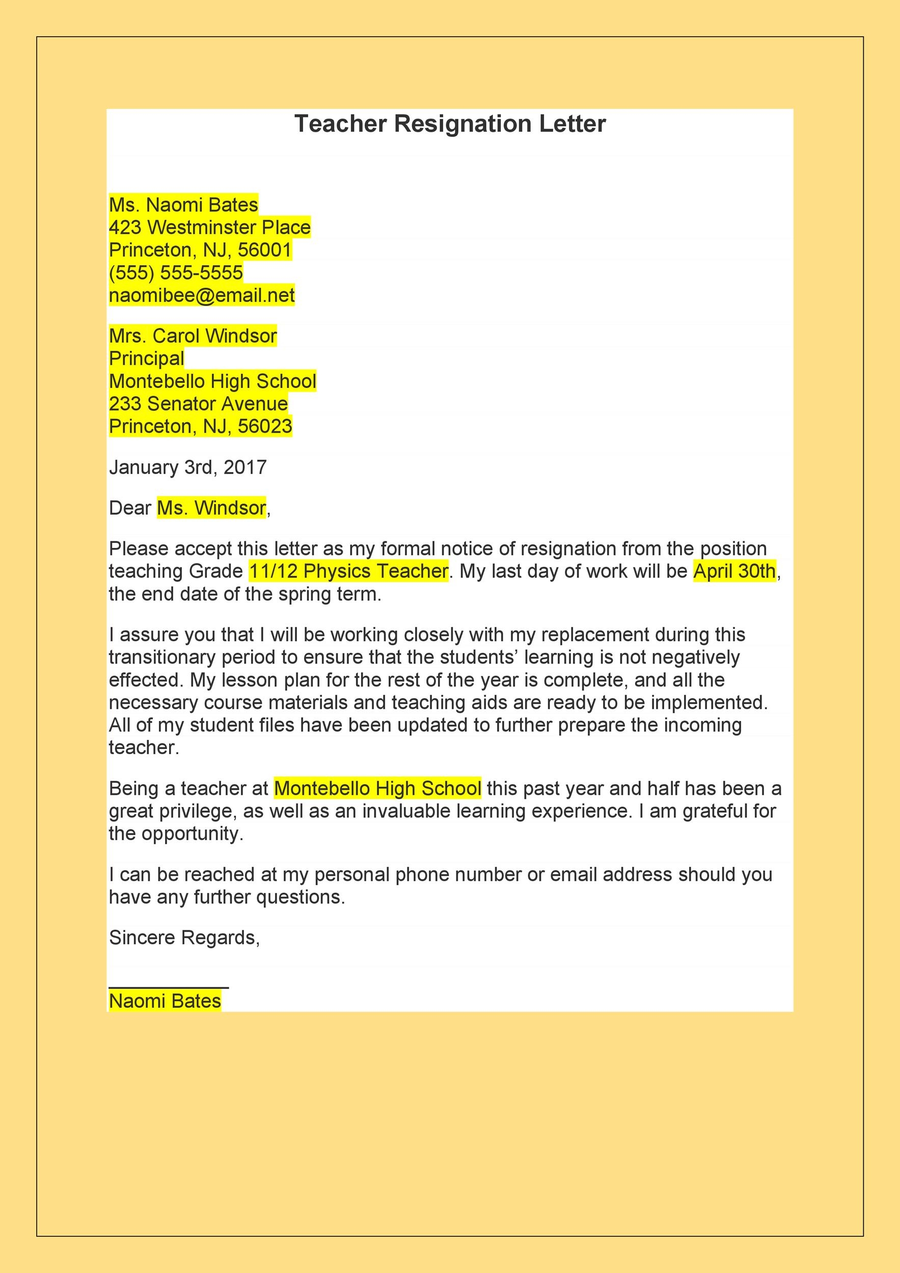 50 BEST Teacher Resignation Letters MS Word TemplateLab