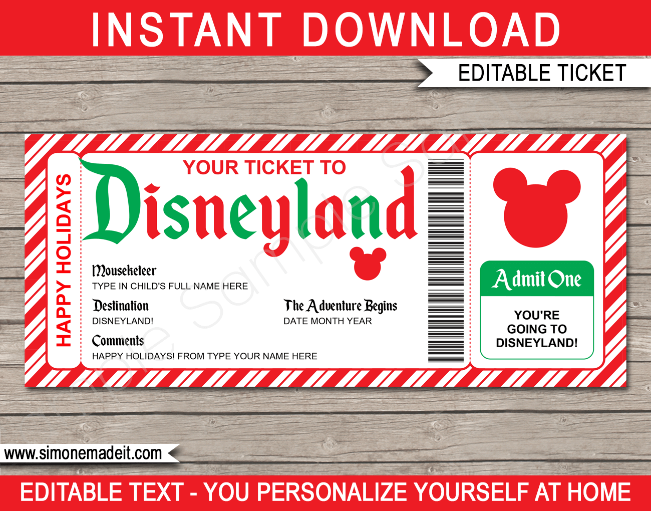 Holiday Disneyland Ticket Template Surprise Disneyland Trip Reveal