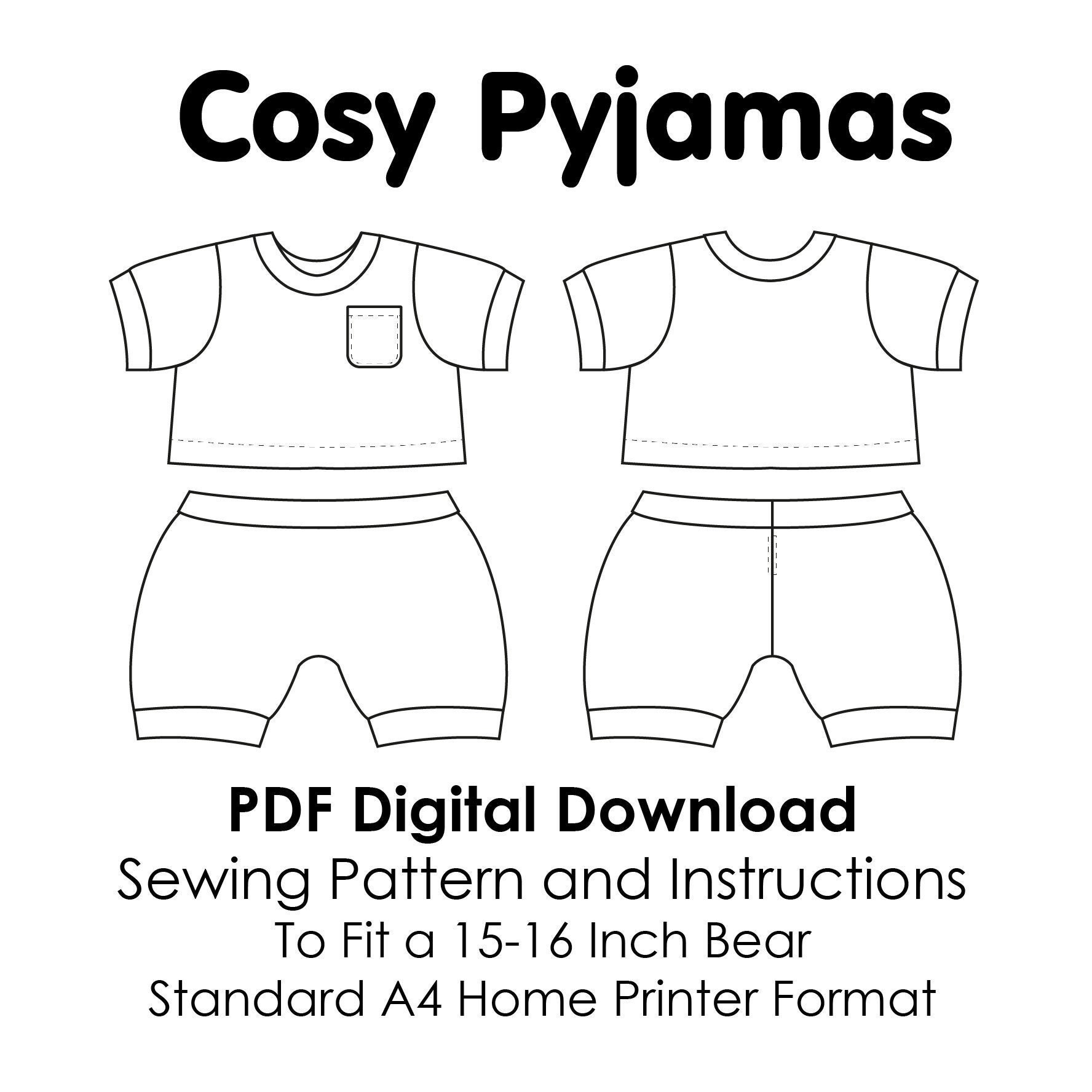 15 16 Inch Teddy Cosy Pyjama Pdf Print At Home Sewing Pattern And Full Instructions Etsy
