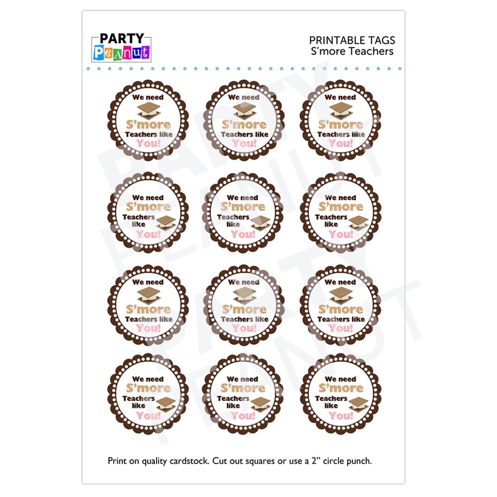 Smore Teachers Tags Printable Smore Favor Tags Party Peanut