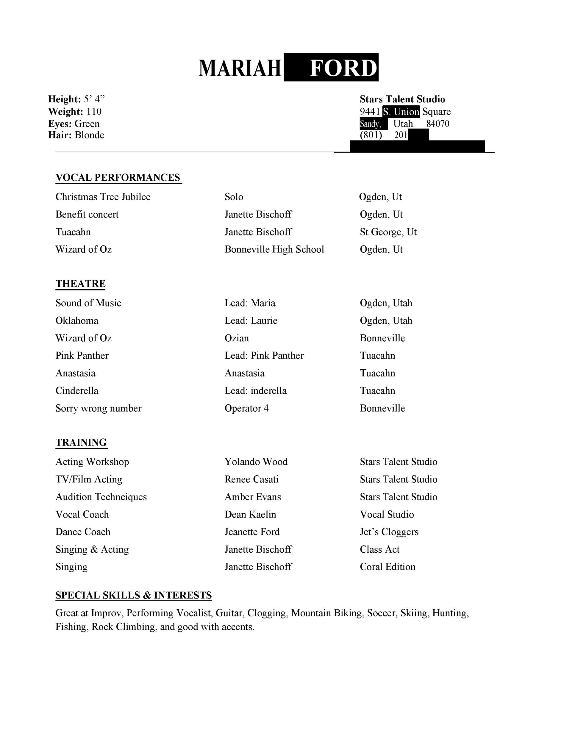 Theater Resume Template Google Docs