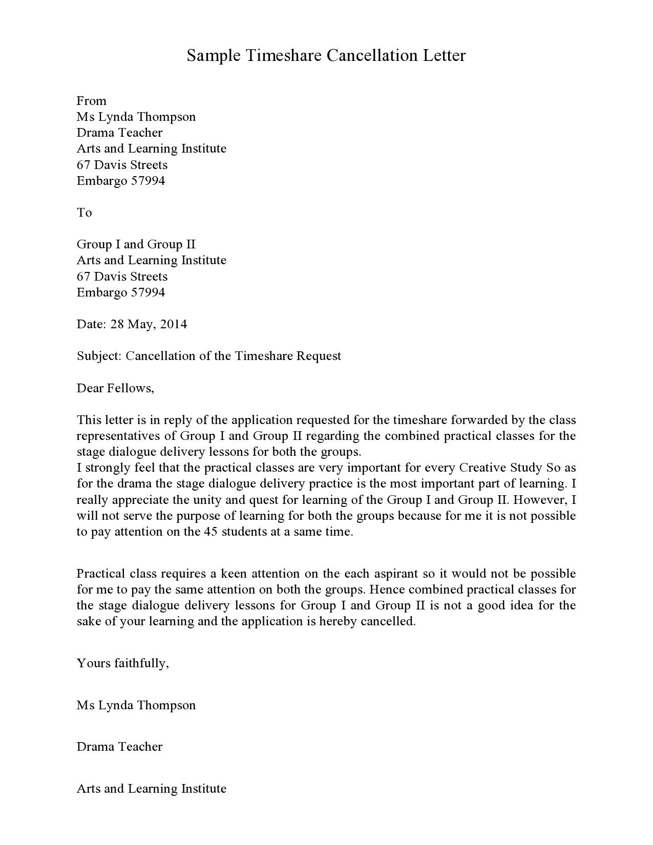 40 Timeshare Cancellation Letter Samples Templates TemplateLab