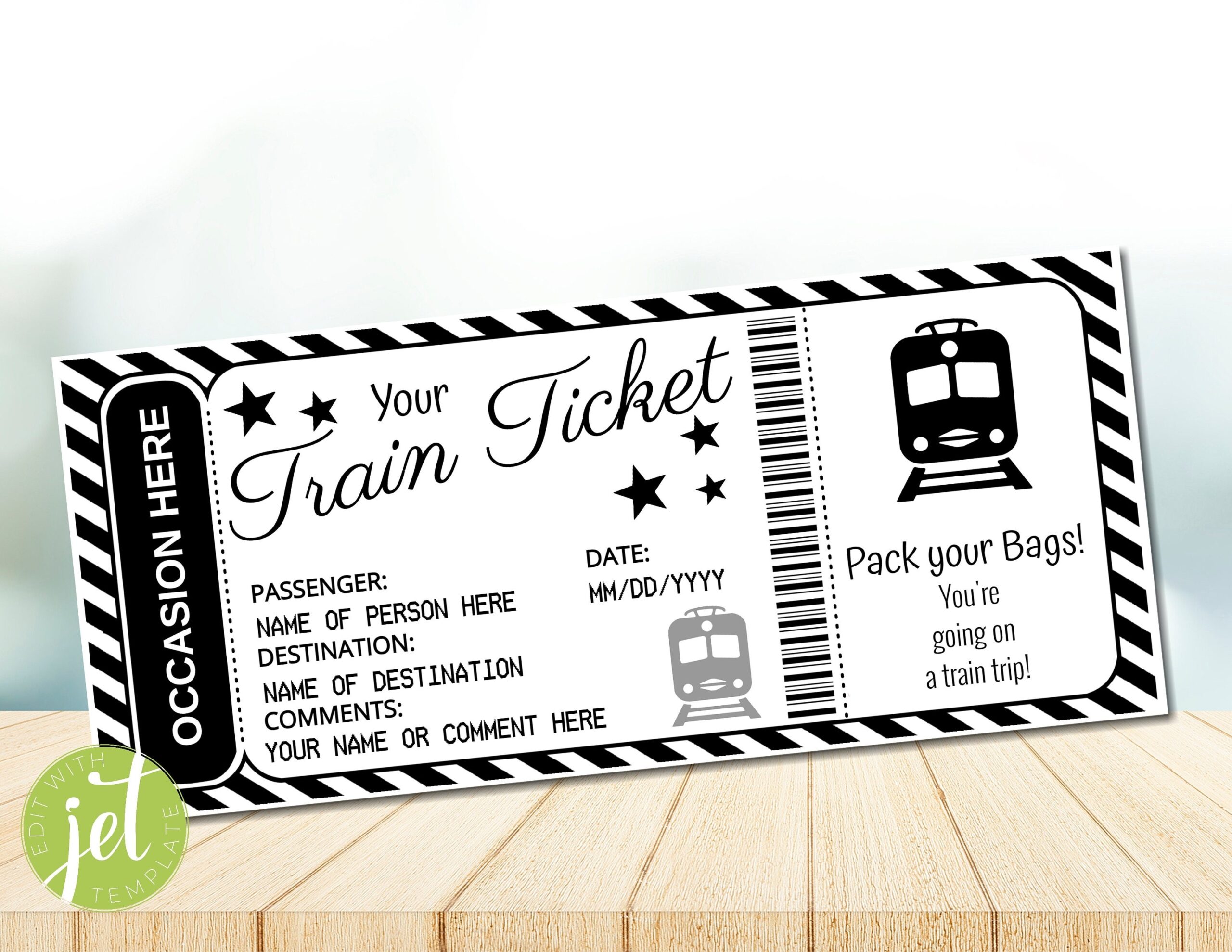Editable Train Ticket Template Fake Boarding Pass Gift Surprise Train Trip Reveal Any Destination Instant Download Etsy