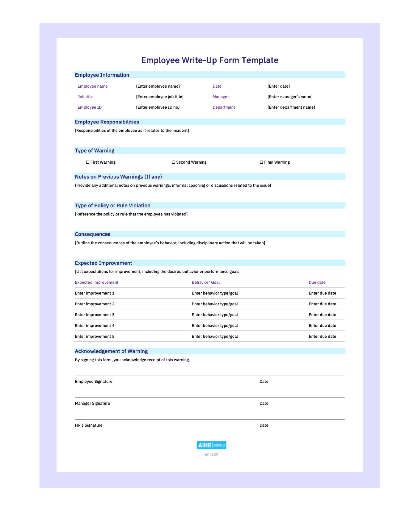Employee Write Up Form Free Form Guide AIHR
